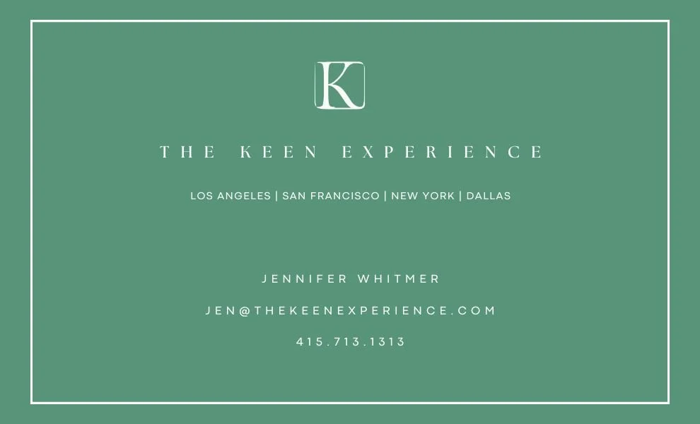 "The Keen Experience’s Jennifer Whitmer possesses an amazing ability to identify and nurture talent. Ever since I first launched my design studio, I have relied on her for insight, opportunities and valuable connections.”